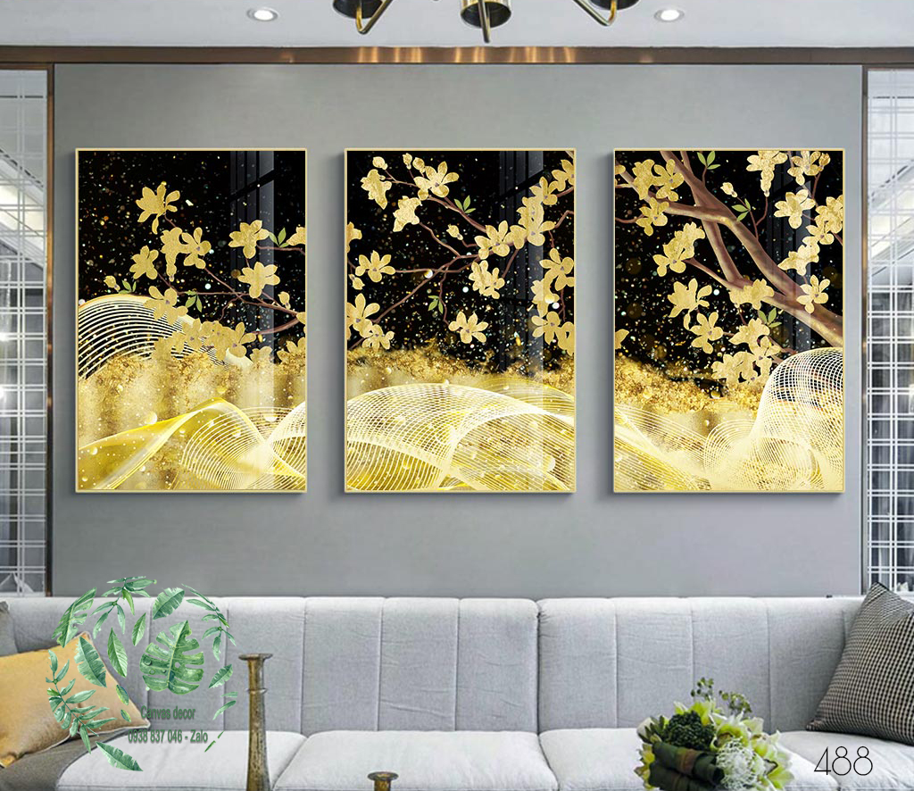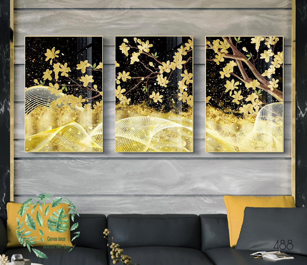 Bộ 3 tranh canvas hoa mai vàng
