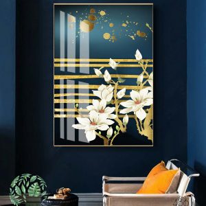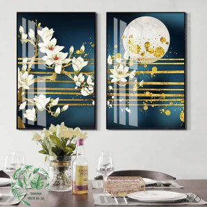 Bộ 3 tranh canvas hoa và trăng